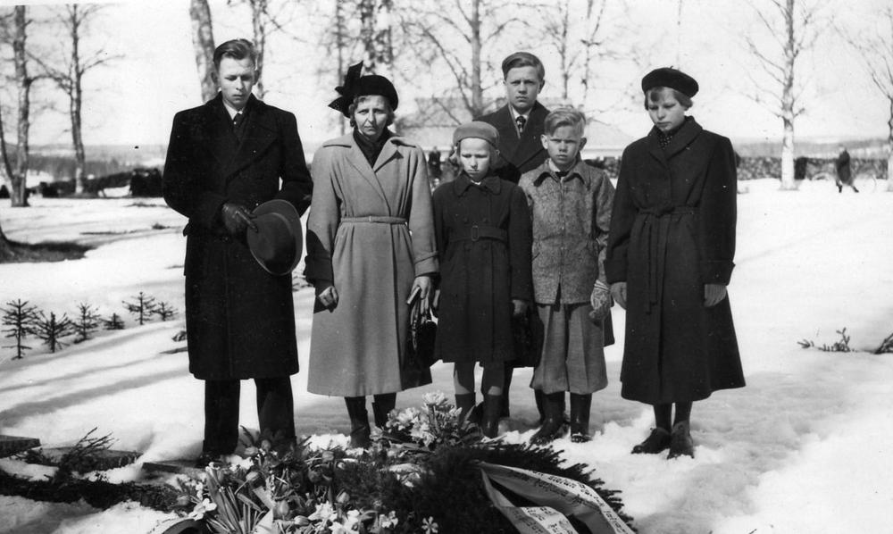 Äidille jäi viisi lasta. Nuorin, eli minä, 1 v. ja vanhin 9 v. Kuudentena lapsena oli anoppi, Maria-mummo.